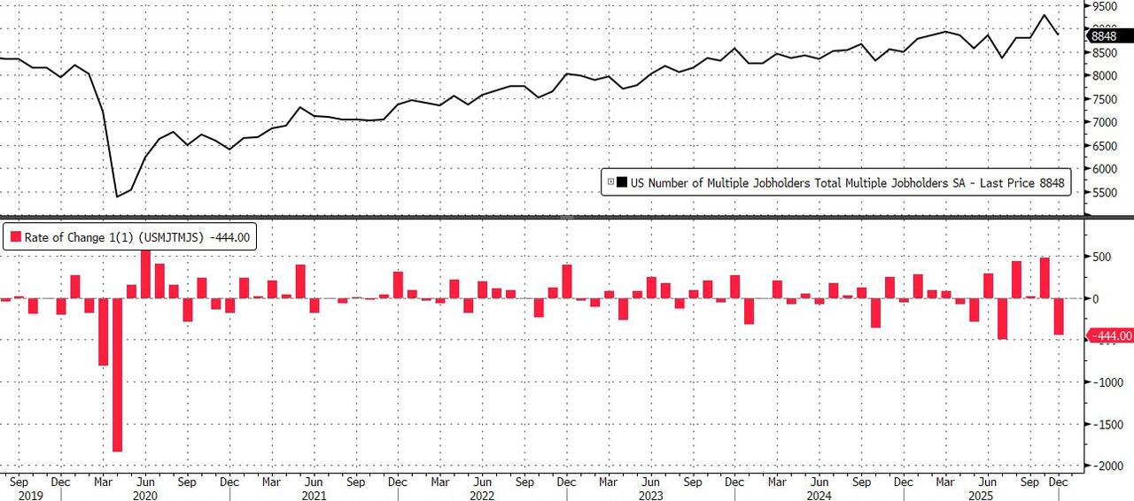 ... while the number of multiple jobholders slumped by 444K - the second biggest drop since Covid - to 8.848MM.