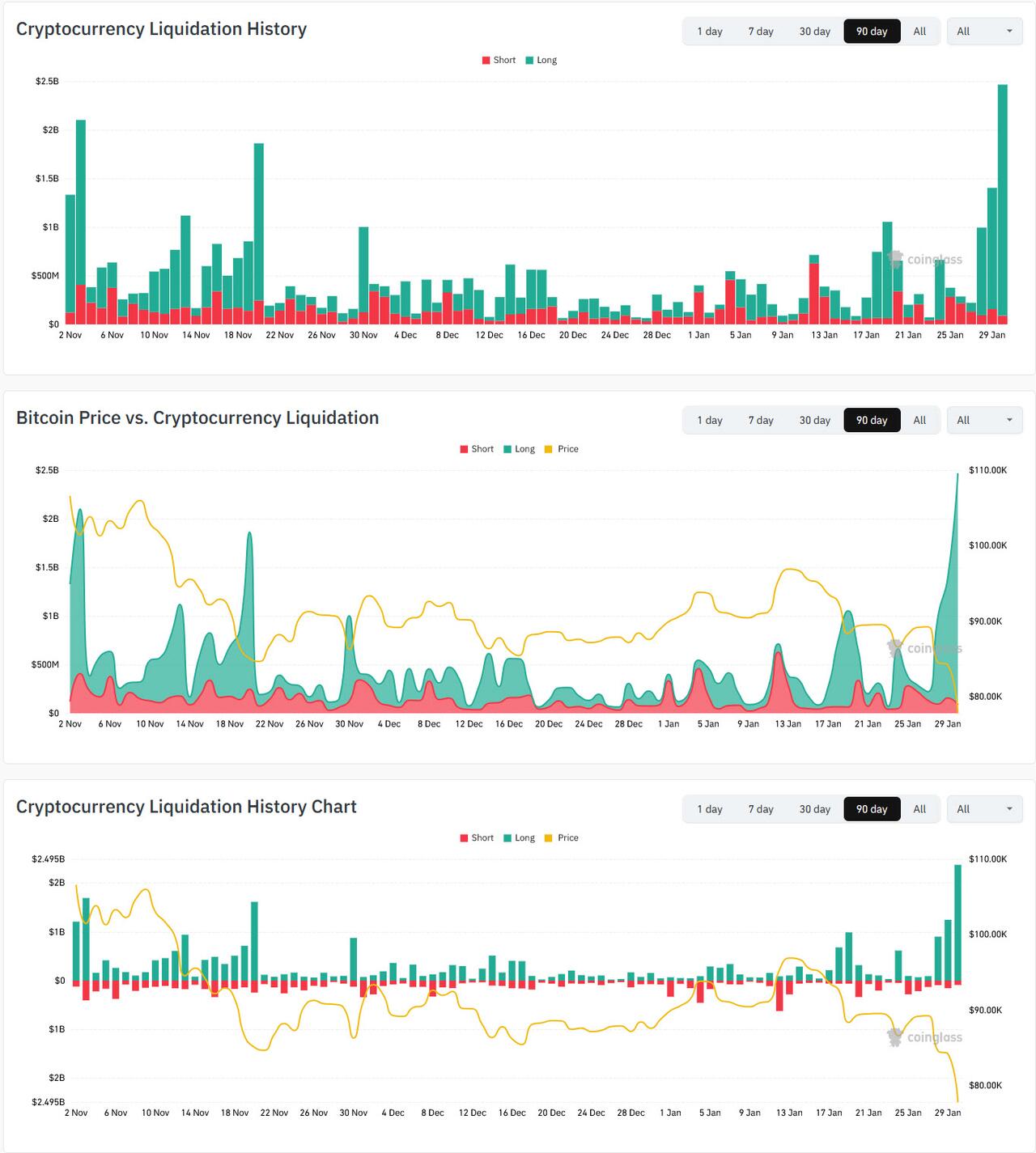 The liquidations have been spread between both bitcoin and ether...