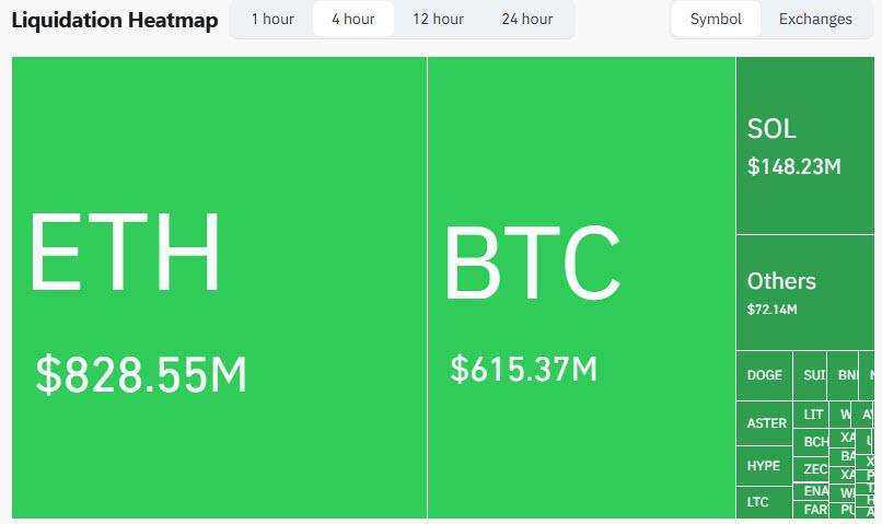 While algos were the initial spark that prompted the selling, the target - as usual - were heavily levered longs: in the past 4 hours more than $1.5 billion in levered positions, mostly longs, were liquidated according to CoinGlass. For reference, on October 10, aka "Black Friday", about $19 billion in crypto leverage was liquidated.